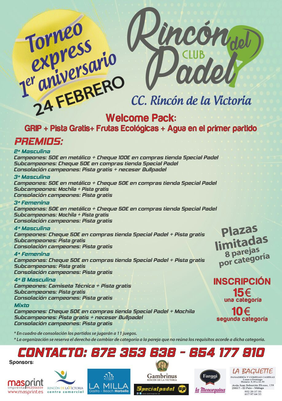Torneo express" Primer Aniversario el Rincon del Padel"