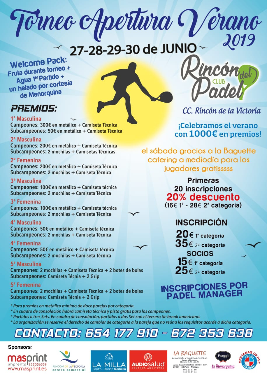 Torneo apertura verano 2019 el Rincón del padel