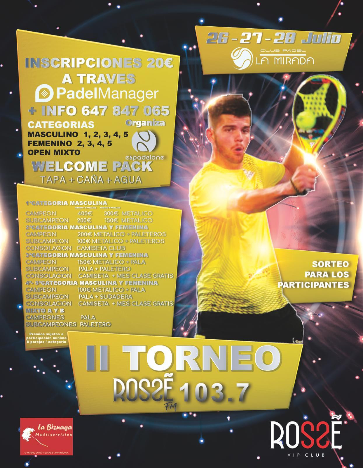 2º Torneo Rosse FM 103.7. La Mirada Padel. 26/27/28 Julio