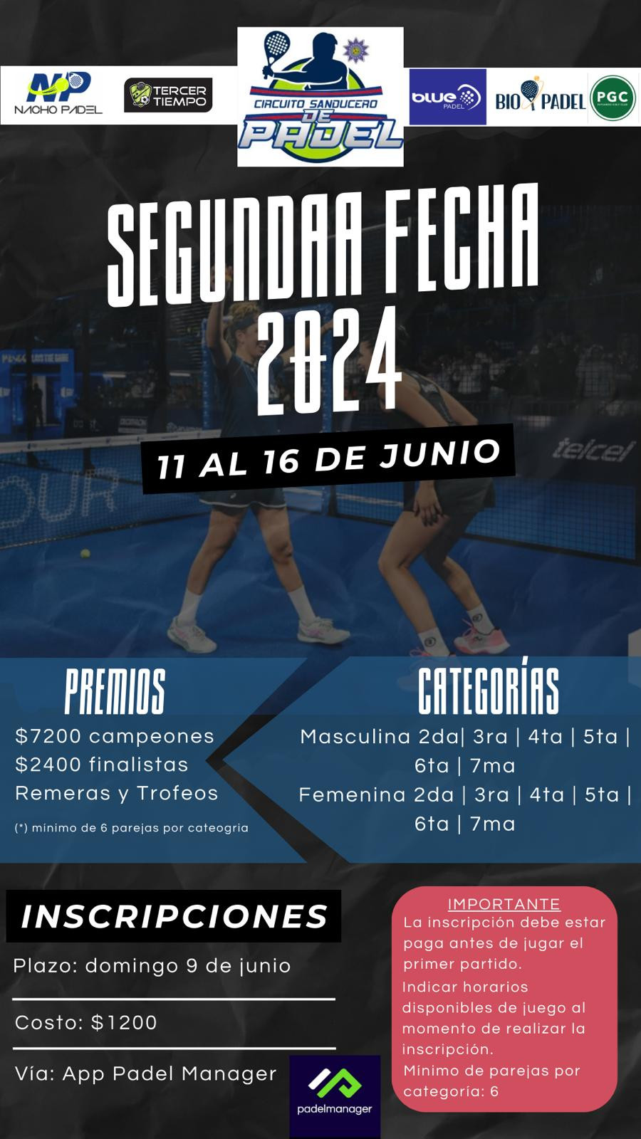Segunda Fecha circuito Sanducero de Padel 2024 - Vola